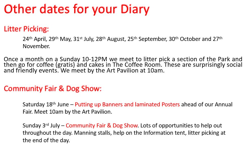 As well as the short formal proceedings outlined below, it is also a good opportunity to meet and socialise with fellow park users over wine and nibbles and meet some of those who look after and manage our park.
